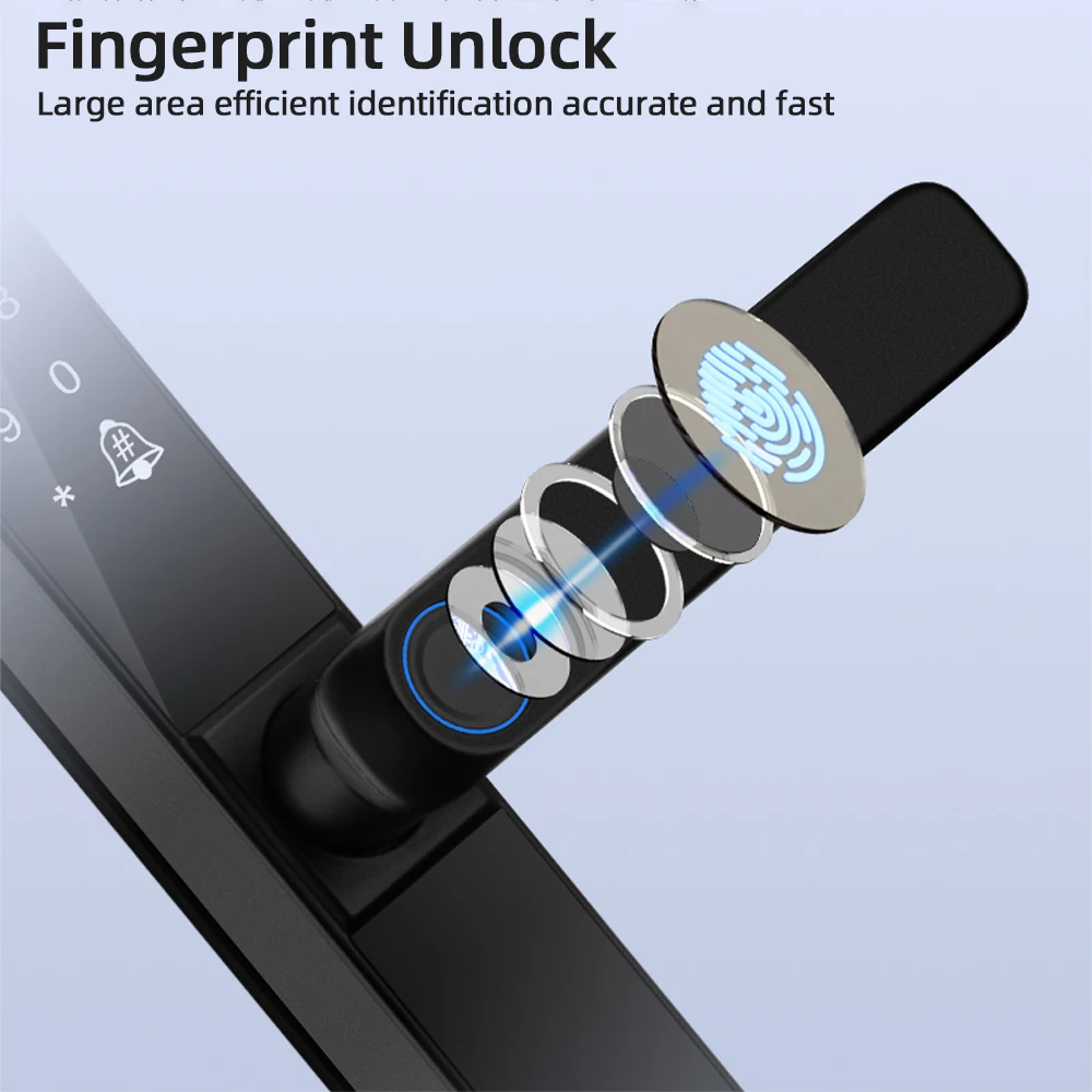1. 5 unlocking methods: Tuya lock App, fingerprint, card, password, key