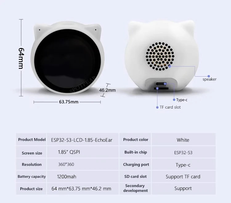 [] ESP32-S3-LCD-1.85-EchoEar 【NO Wireless Charging Base】