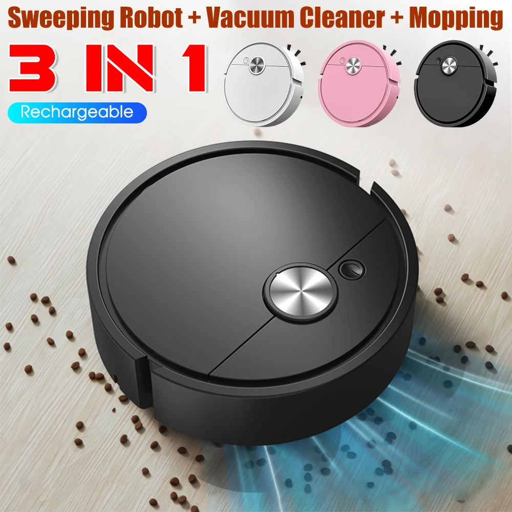 3 in 1 Vacuum Mop Robot Rechargeable Sweeping Machine Strong Suction Compact Cleaning Machine for Pet Hair Stubborn Dirt