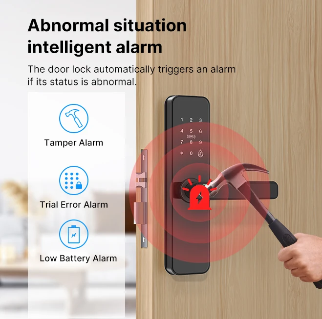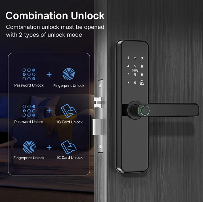 【Smart Lock Fingerprint Lock - Versatile Unlock】- Fingerprint + password + card + mechanical key 4 unlocking methods, independent mode or combination mode. Unlocking method can be set by yourself, but also can open the door with tuya APP(WIFI Connection), very smart and convenient. Suitable for office, home, warehouse.