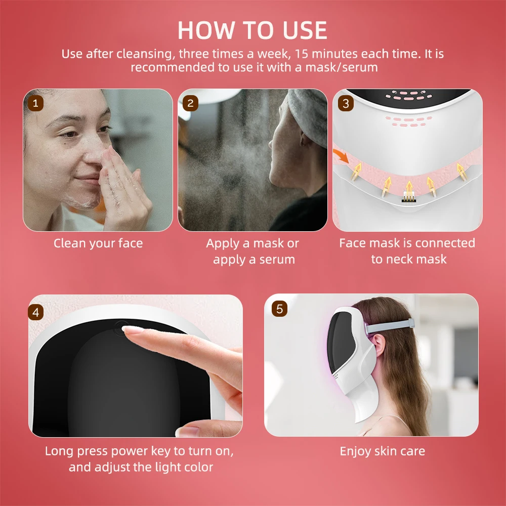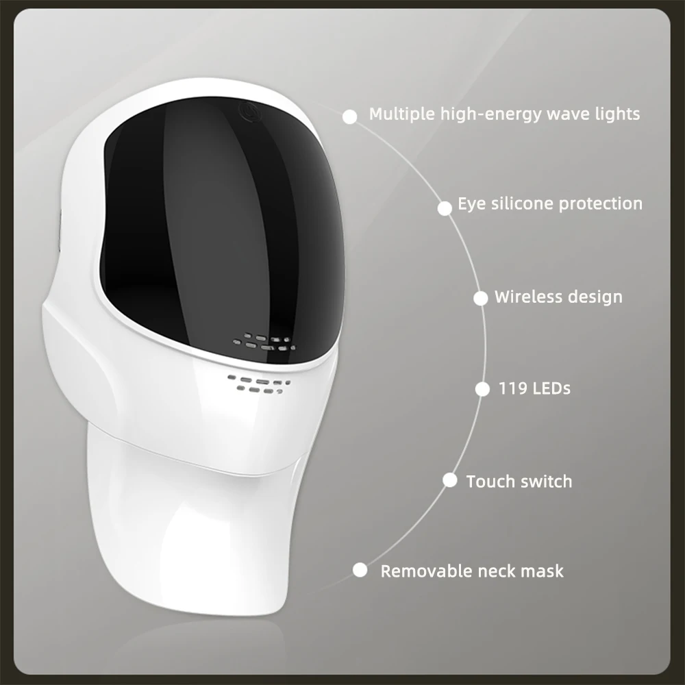 2.Face + Neck Double Care. 89+30 lamp beads, fully cover both your face and neck to realize comprehensive effect.
